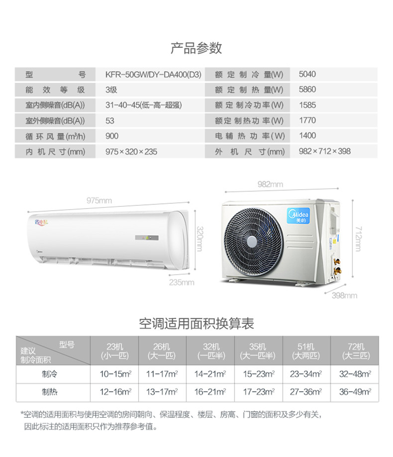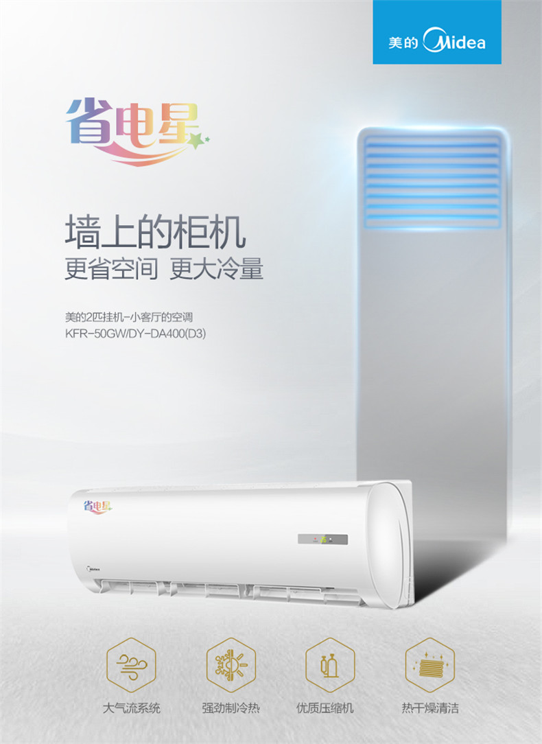 美的 KFR-50GW/DY-DA400(D3) 定频冷暖挂机