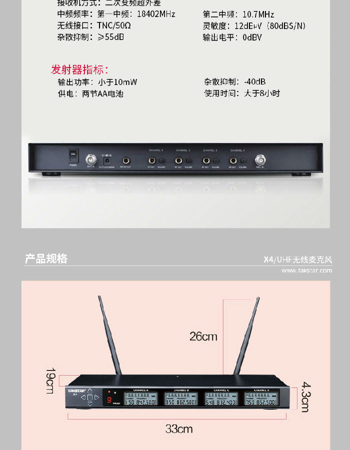得胜 X4 UHF无线麦克风主机(仅主机价格,不含发射)