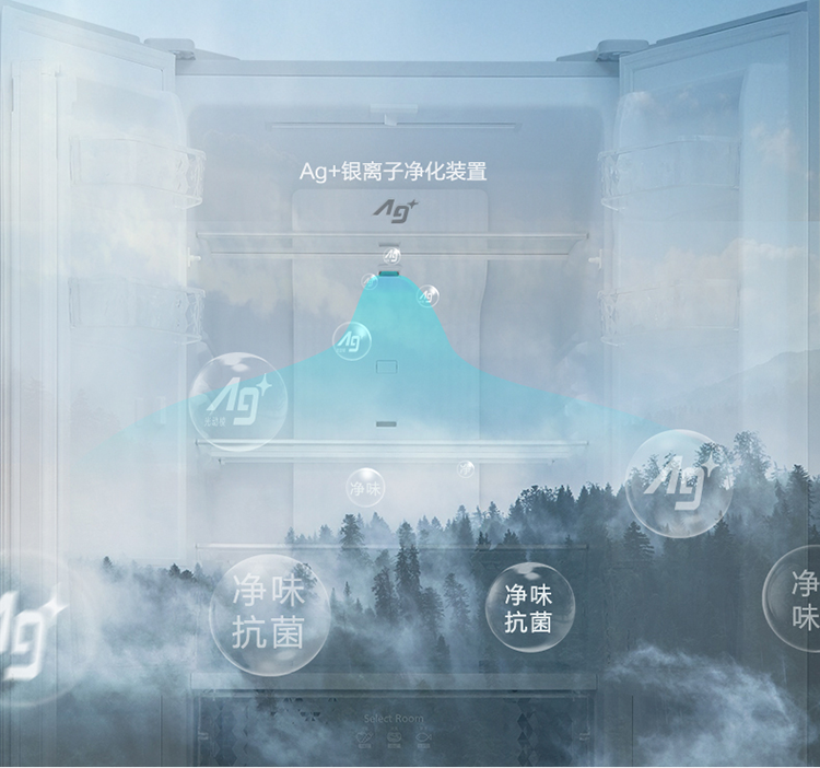 松下(Panasonic)变频风冷十字对开门冰箱家用钢化玻璃银离...