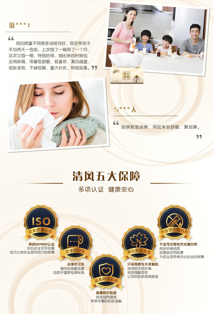 清风原木纯品200抽纸巾抽纸 面巾纸 餐巾纸 48包/箱