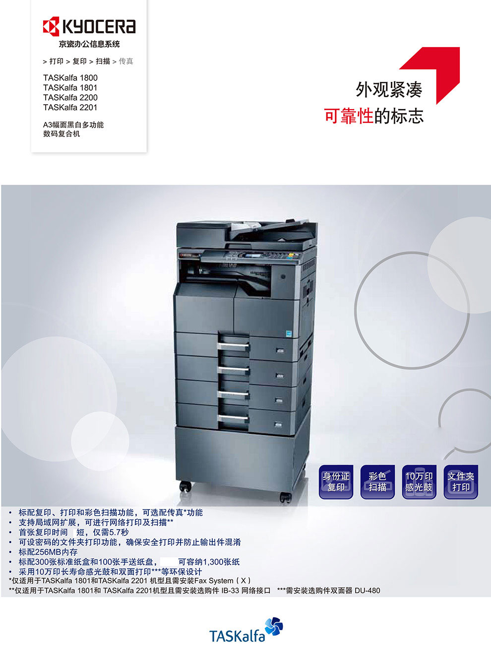 京瓷2210复印机(含输稿器、双面器、双纸盒、配套机柜、原厂三年免费上门服务)