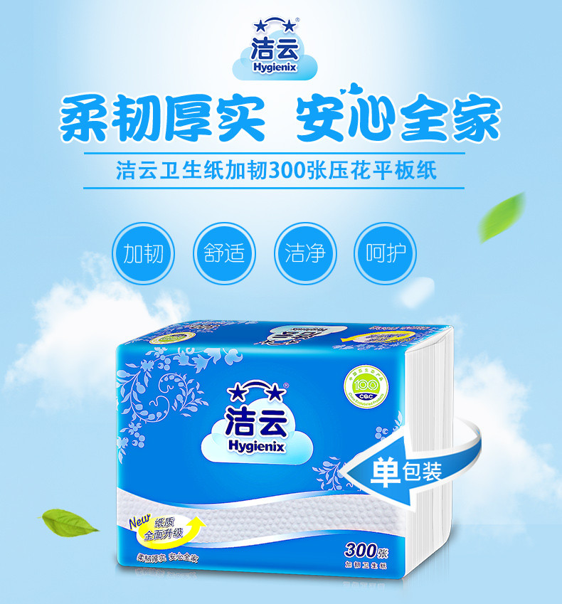 洁云卫生纸厕纸手纸400张整箱30包加韧压花草纸