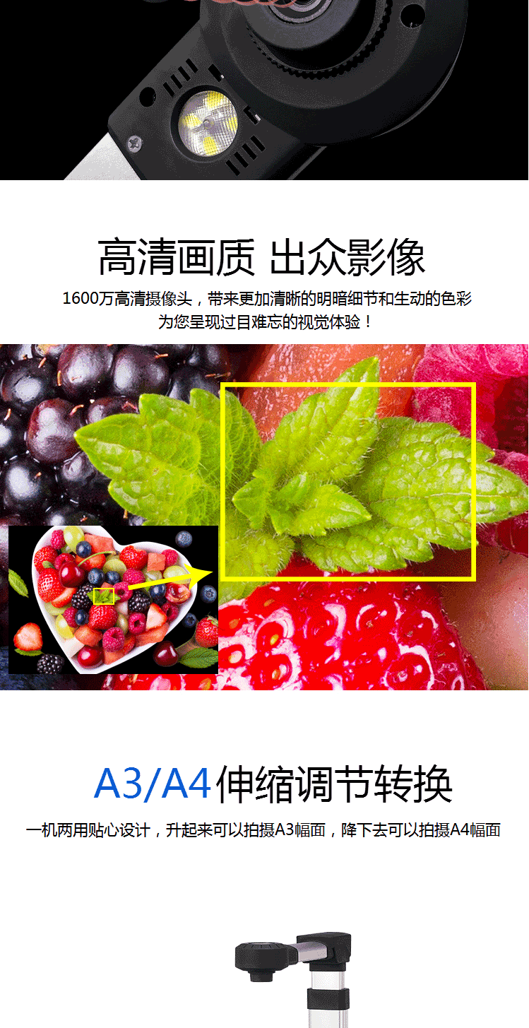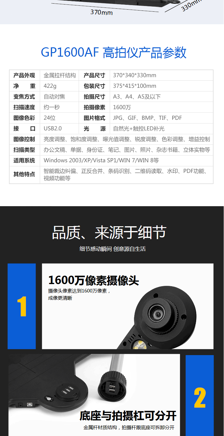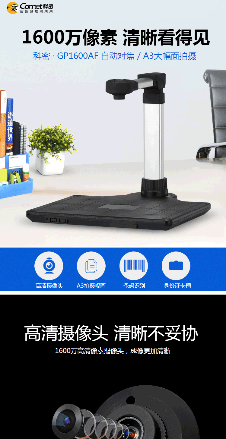 科密 高拍仪 1600万像素全自动对焦 A3/A4 项目工程投招标文档 扫描仪 GP1600AF
