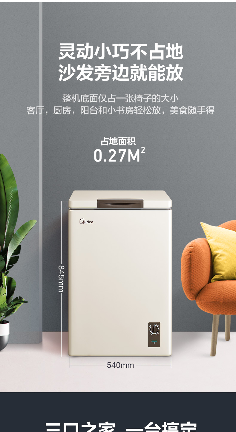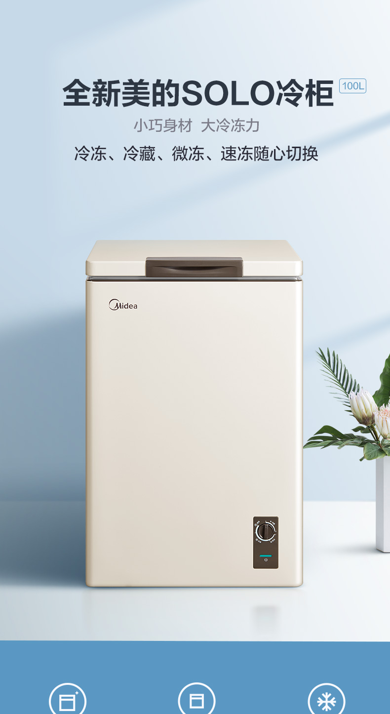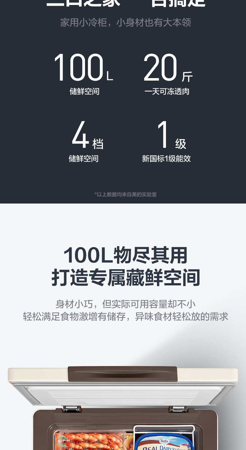 美的(Midea) 100升 solo 家用迷你小冰柜 顶开单温...