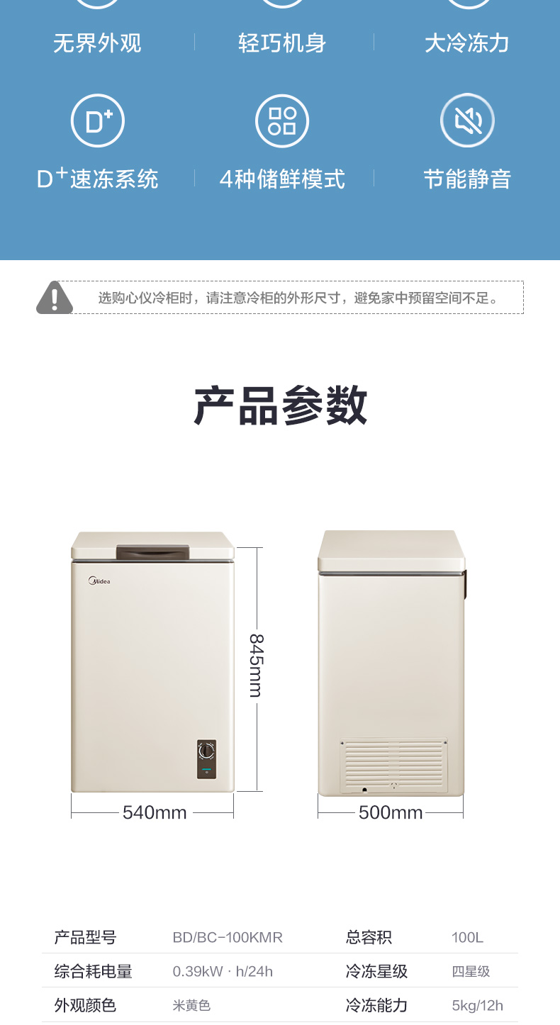 Midea/美的 BD/BC-100KMR冰柜家用小型冷藏冷冻迷你冷柜卧式冰箱
