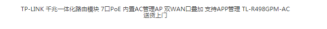 TP-LINK 千兆一体化路由模块 7口PoE 内置AC管理AP 双WAN口叠加 支持APP管理 TL-R498GPM-AC 送货上门