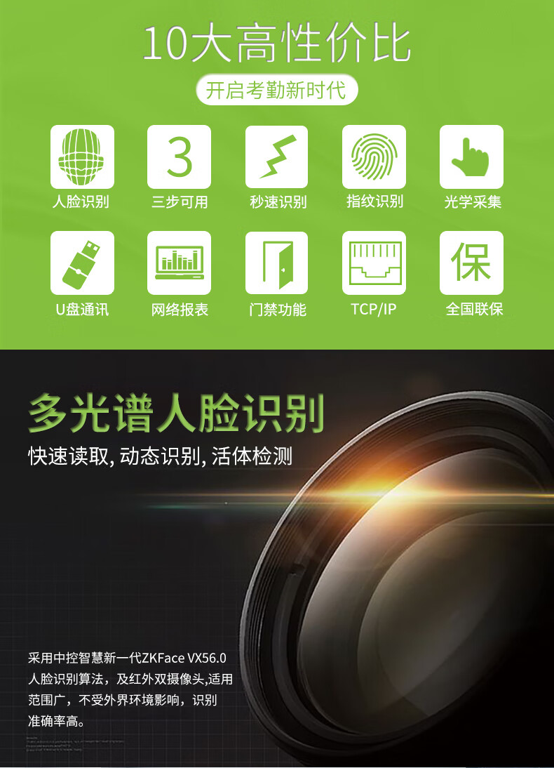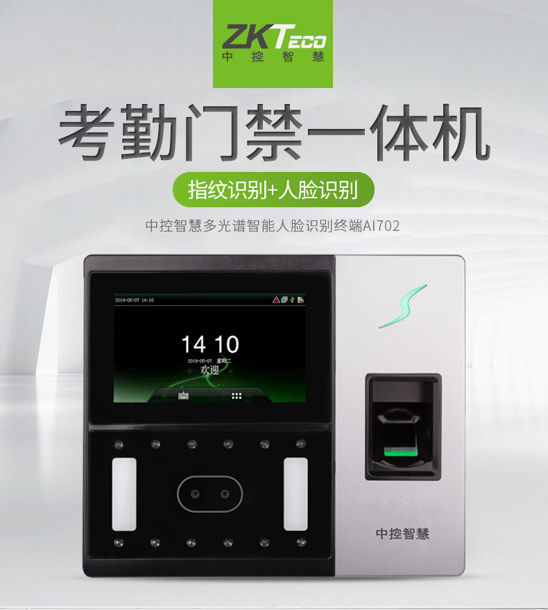 中控智慧(ZKTeco) AI702人脸识别指纹考勤机