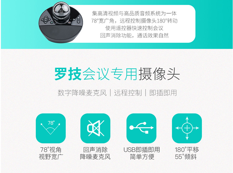 罗技BCC/C950高清摄像头专用台式1080p自动变焦