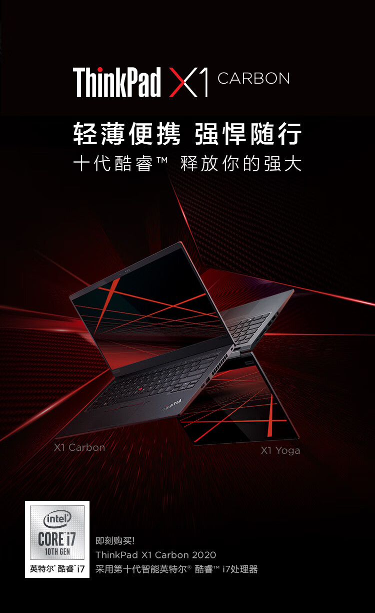 联想ThinkPad X1 Carbon 2020(39CD)英特尔酷睿i7 14英寸高性能笔记本电脑(十代i7 16G 1TSSD 4K)4G版 纹理黑