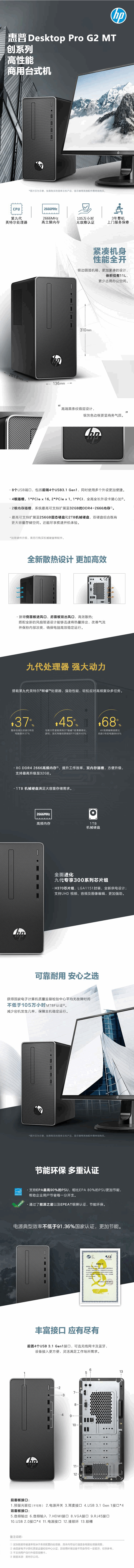 惠普Desktop pro G2台式计算机(i3-9100/8G/128SSD+1T/21.5英寸(三年质保)