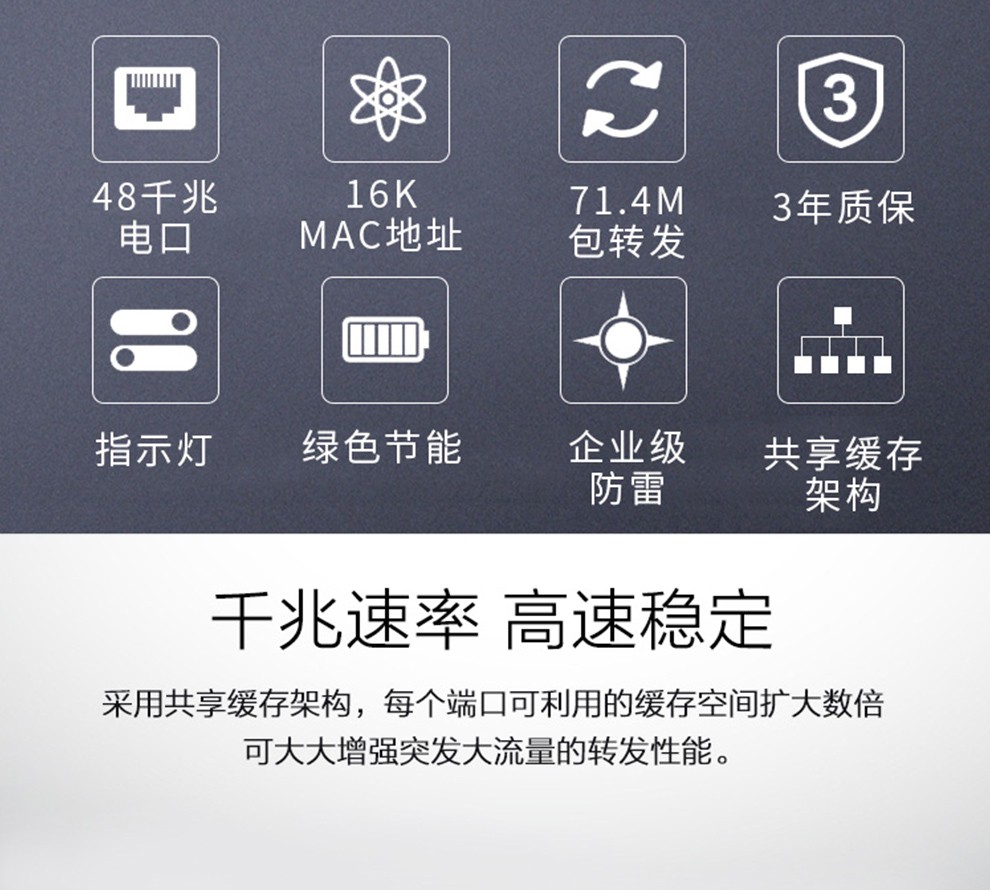 华三(H3C)企业级48口全千兆交换机 二层机架式防雷监控网络 ...
