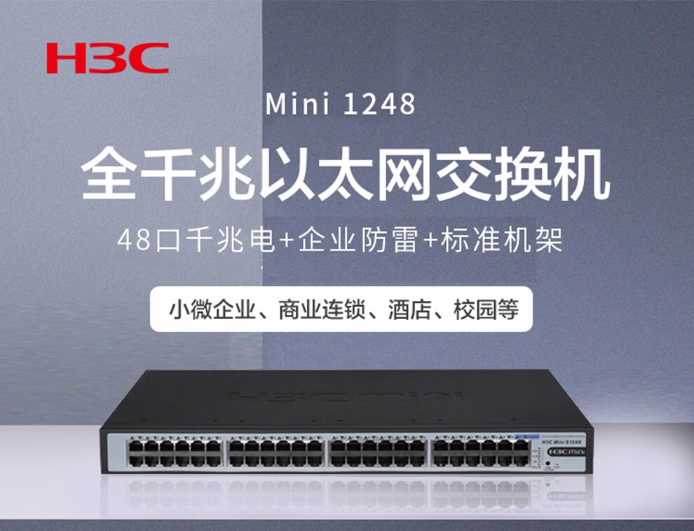 华三(H3C)企业级48口全千兆交换机 二层机架式防雷监控网络 MINI S1248 非网管傻瓜式