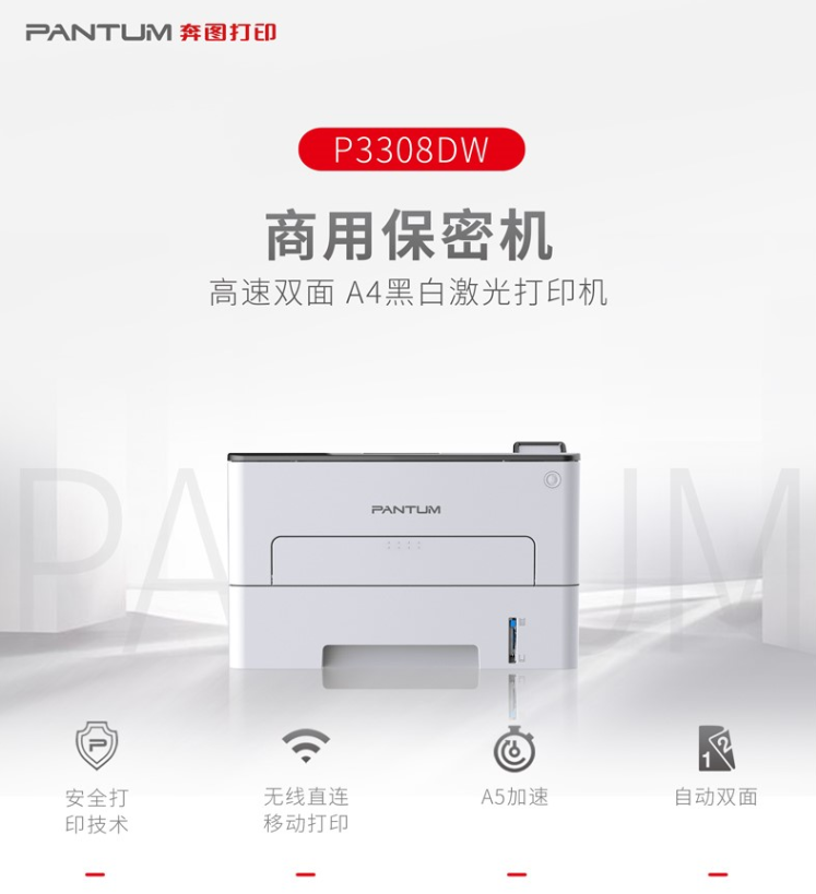 奔图(Pantum) P3308DW 商用A4黑白双面激光打印机