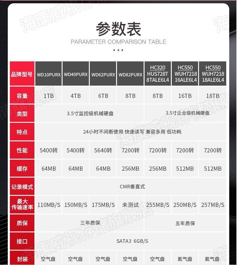 海康威视监控硬盘 机械硬盘电脑服务器设备套装录像主机台式nas专用SATA64M西部数据紫盘WD 西数 6TB (WD62PURX)