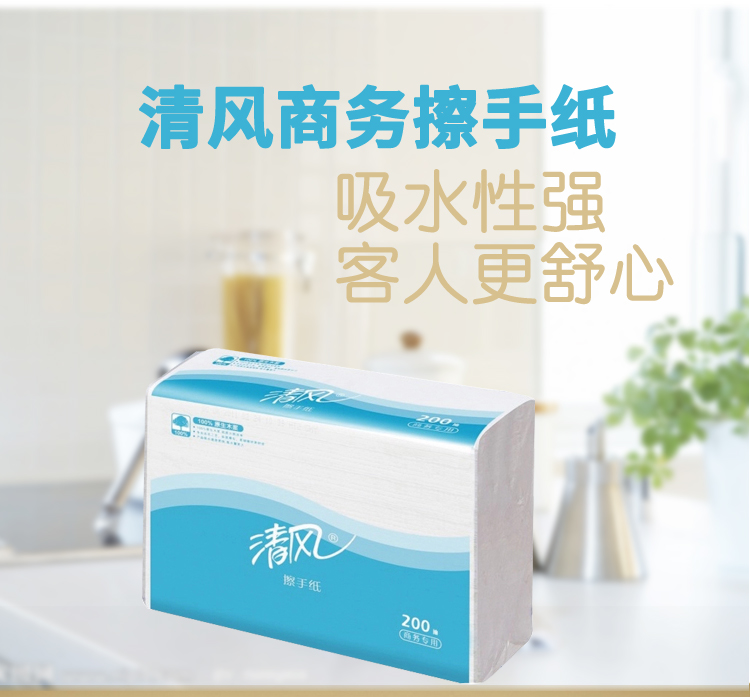 清风擦手纸b913ac商用三折200抽20包酒店卫生间酒店抽取纸巾整箱