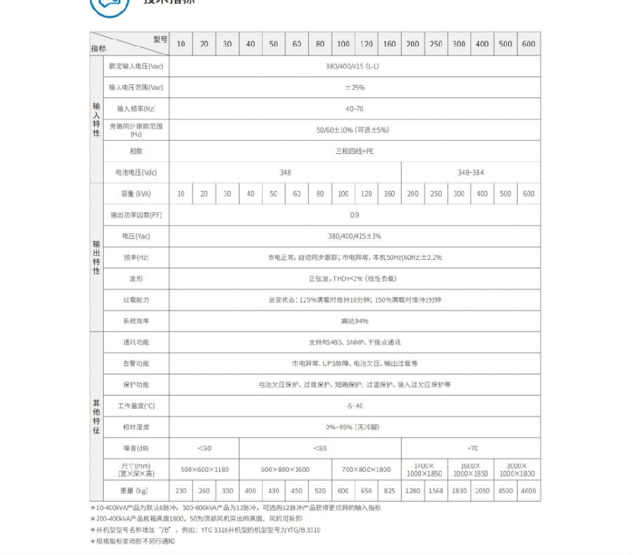 科华YTG3380三进三出80KVA/72KW双变换UPS不间断...