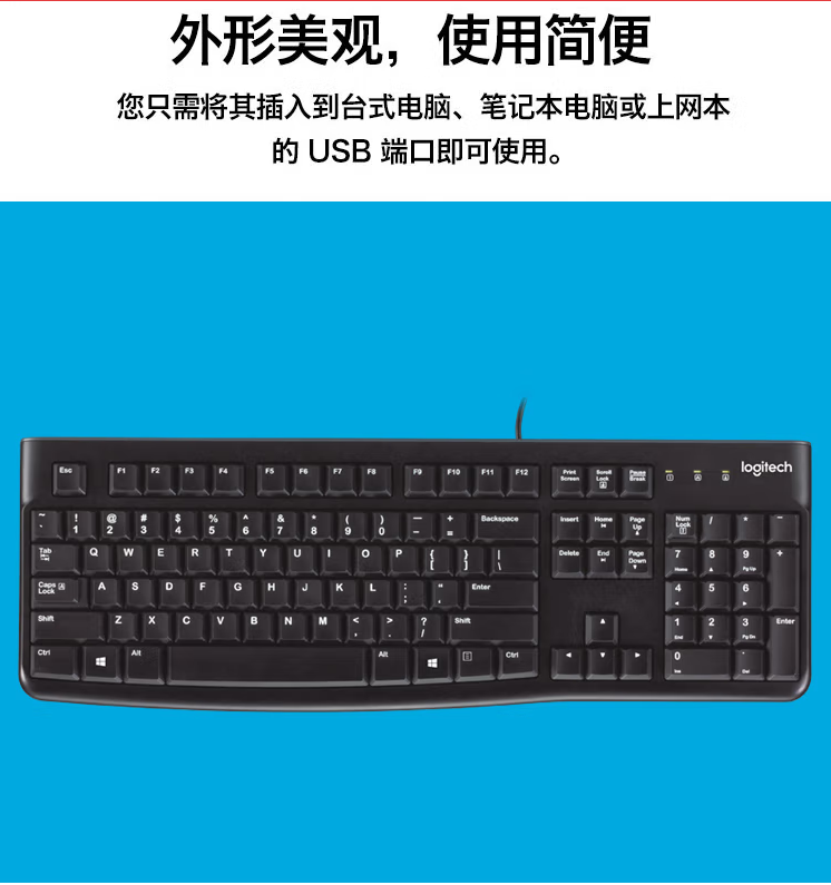 罗技(Logitech) K120有线键盘 USB口电脑笔记本商...