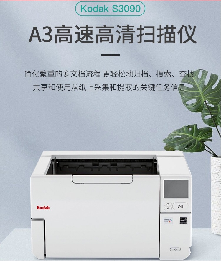 柯达(Kodak)S3090馈纸式扫描仪 A3高速双面自动进纸 教育阅卷 柯达S3090