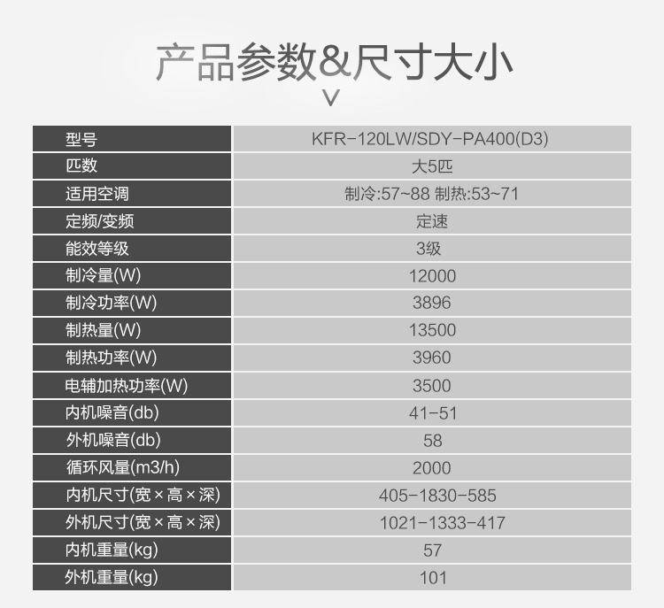| 美的 KFR-120LW/SDY-PA400(D3) 5匹冷暖定频柜机 (内含4米铜管) | 柜式空调 | Midea/美的 | 台 | 2 | 9506.00 | ||
